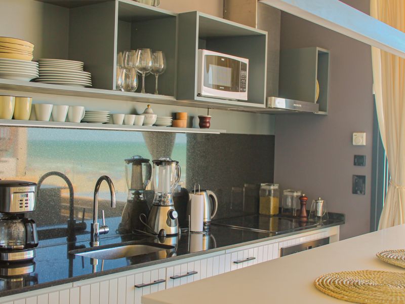 Cocina equipada con electrodomésticos y vajilla de calidad